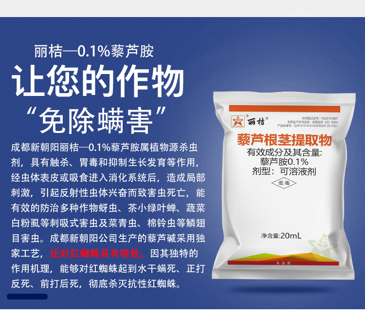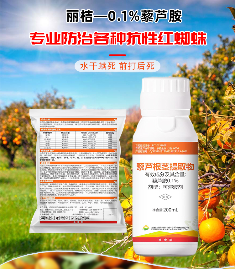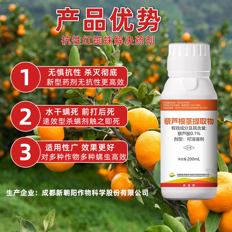 成都新朝阳5%藜芦碱藜芦胺杀螨剂螨卵双杀水干螨死速效持效金满维丽桔