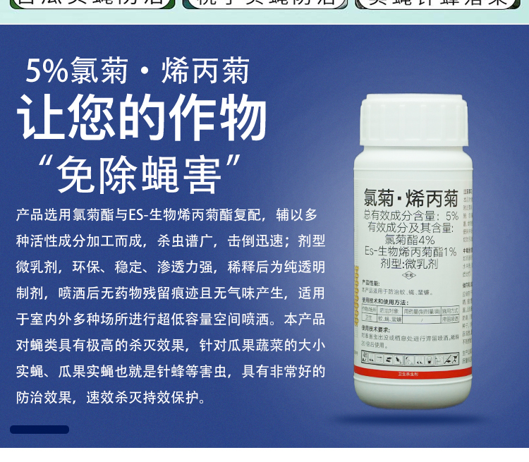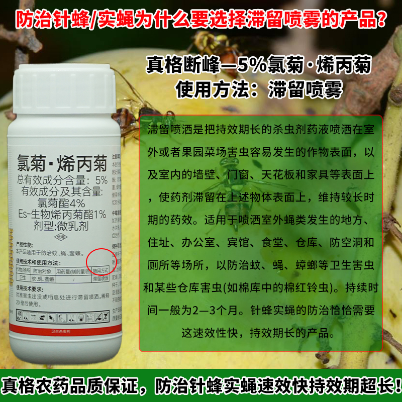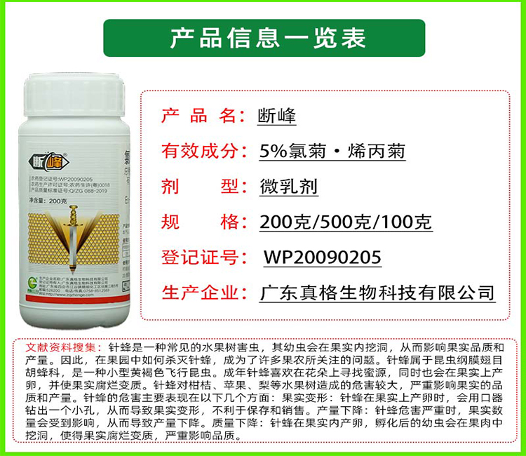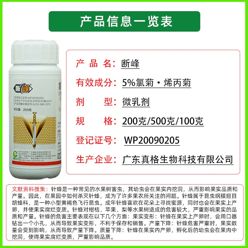 广东真格断峰5%氯菊·烯丙菊针蜂果实蝇专用黄瓜柑橘蔬菜果树通用